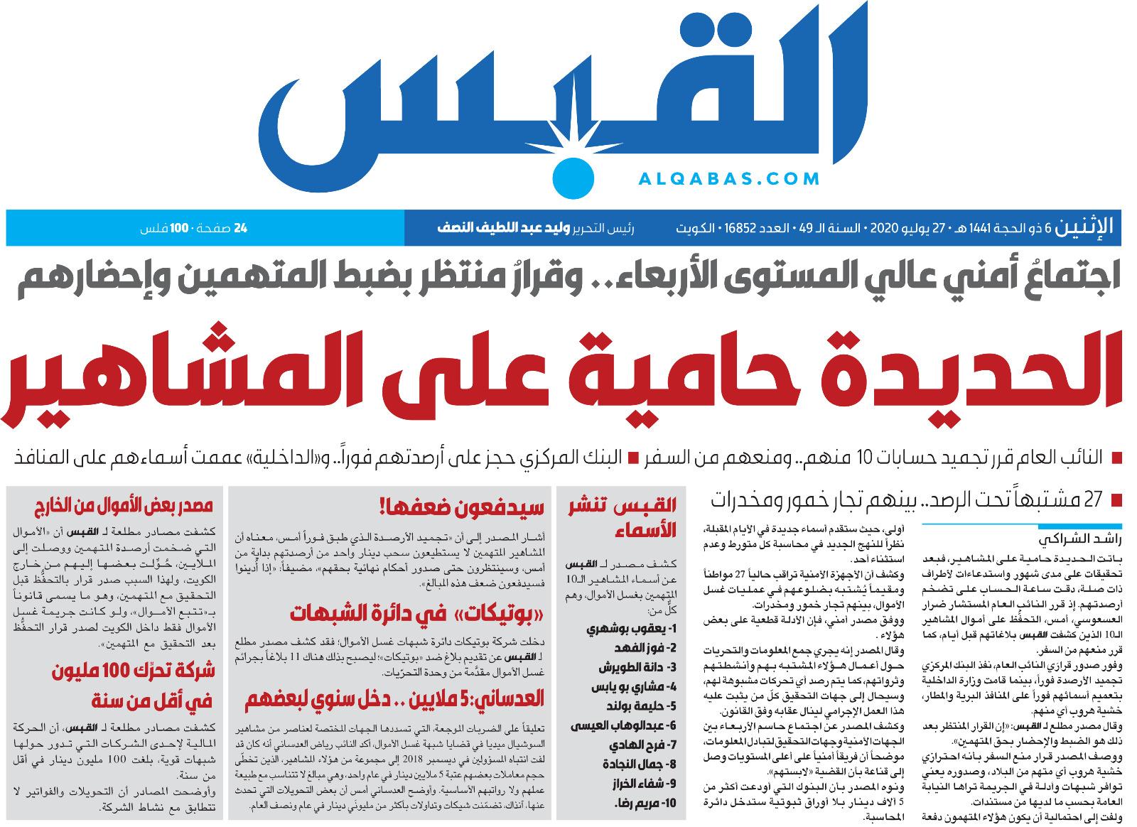 القبس On Twitter عاجل القبس تنشر أسماء المشاهير المتهمين اجتماع أمني عالي المستوى الأربعاء وقرار منتظر بضبط المتهمين المركزي حجز على أرصدتهم فورا و الداخلية عممت أسماءهم على المنافذ 27