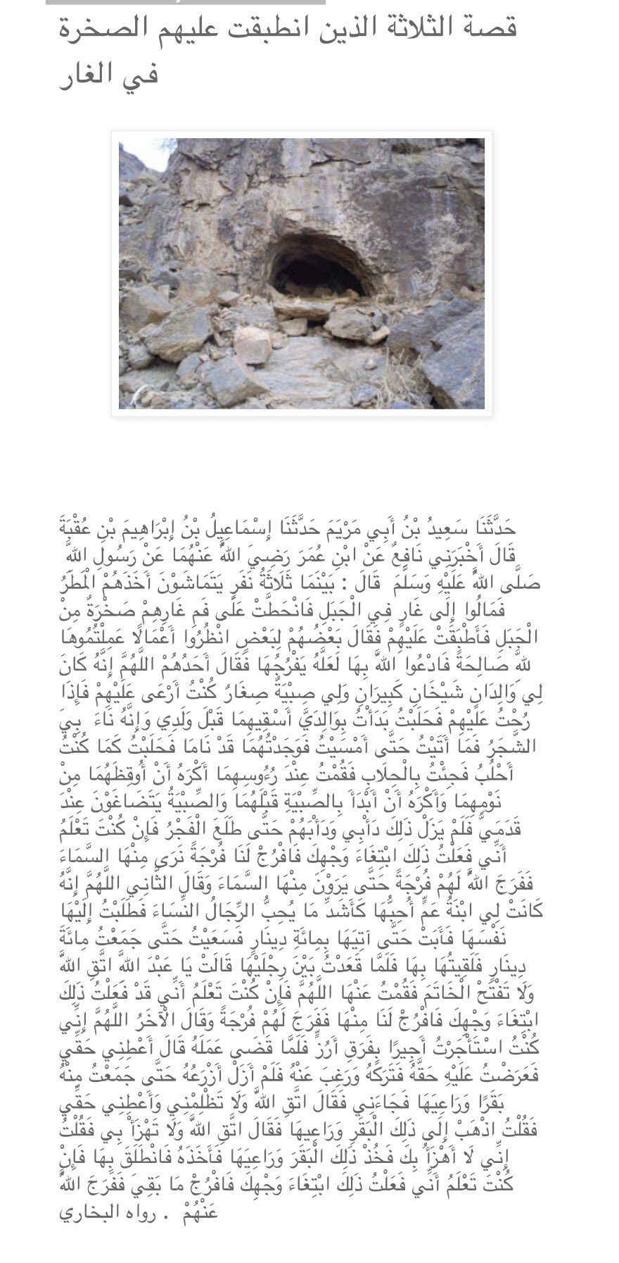 حديث الثلاثة الذين انطبقت عليهم الصخرة