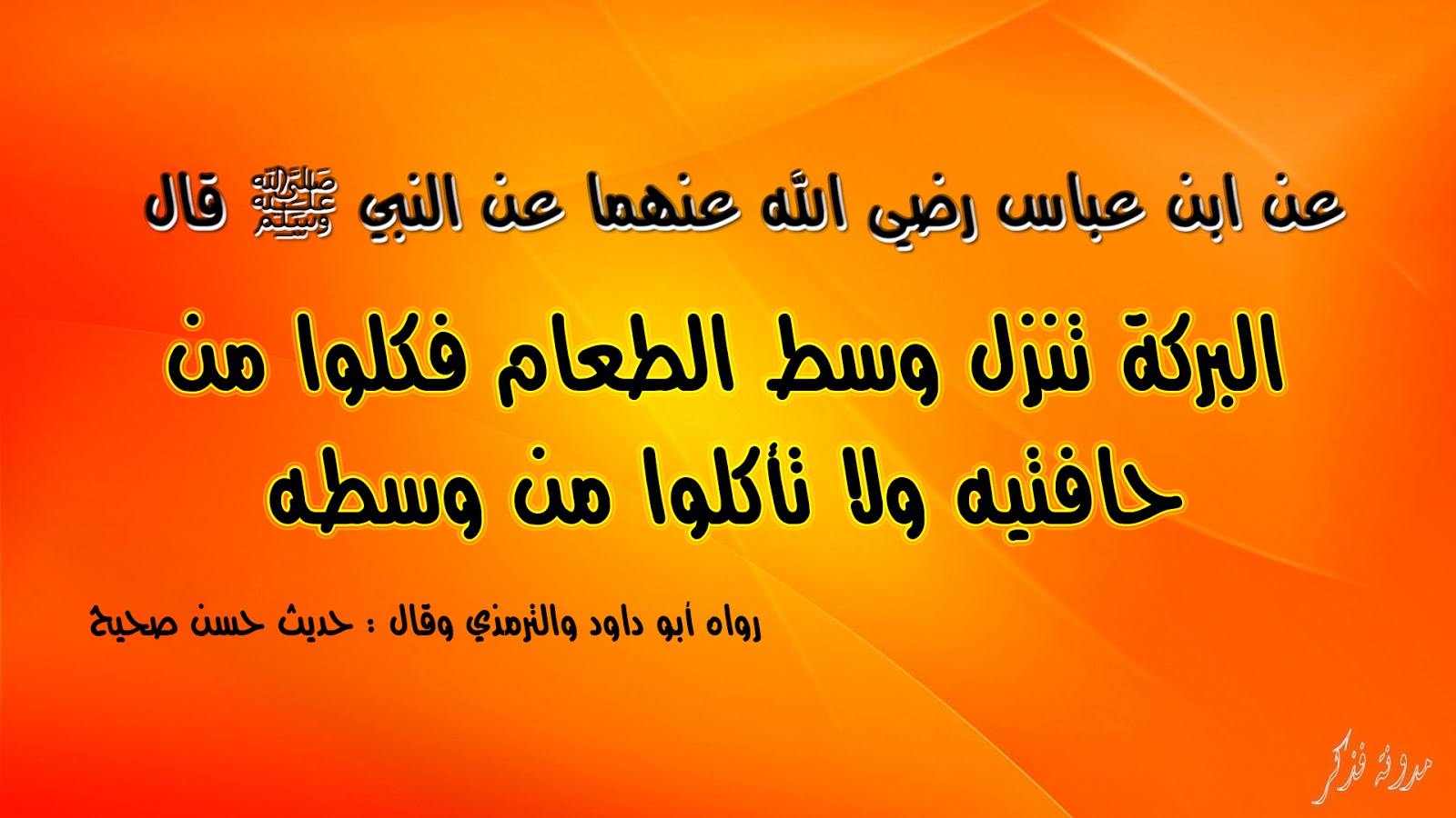 شرح حديث البركة تنزل وسط الطعام فكلوا من حافتيه مدونة فذكر