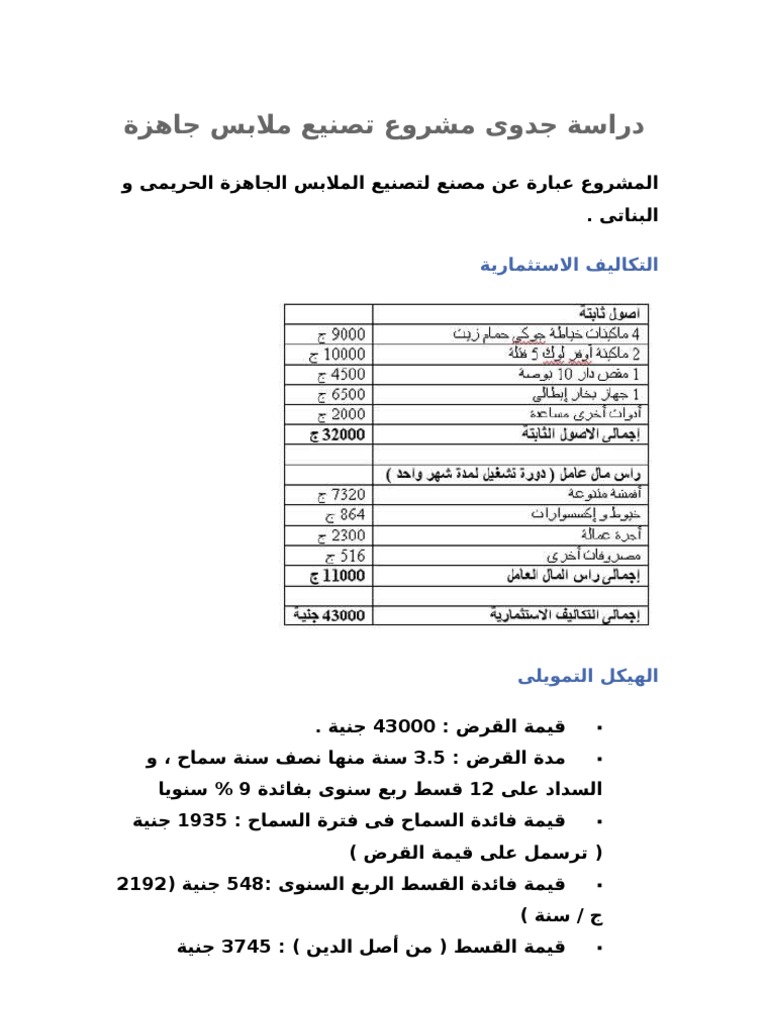 دراسة جدوى مصنع ملابس جاهزة Pdf